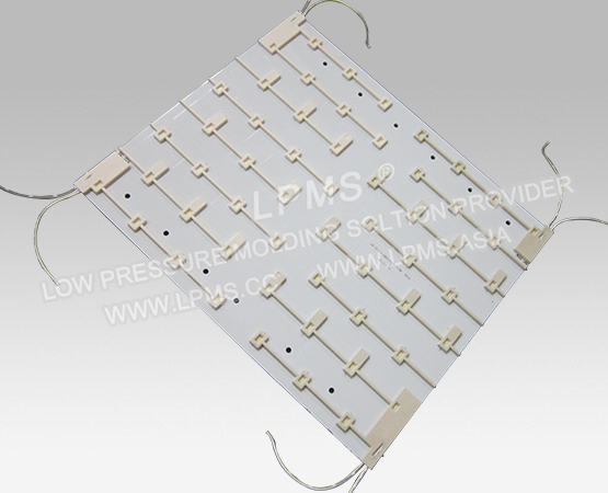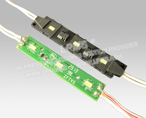低壓注塑工藝運用于各式LED串燈、LED模組等的防水包封中, 對比傳統(tǒng)灌膠工藝與高壓注塑工藝,具有固化周期短、生產(chǎn)效率高、無損電子元器件、不良率低,注塑好的產(chǎn)品防水等級高等特點,正被越來越多的LED廠商采用。
