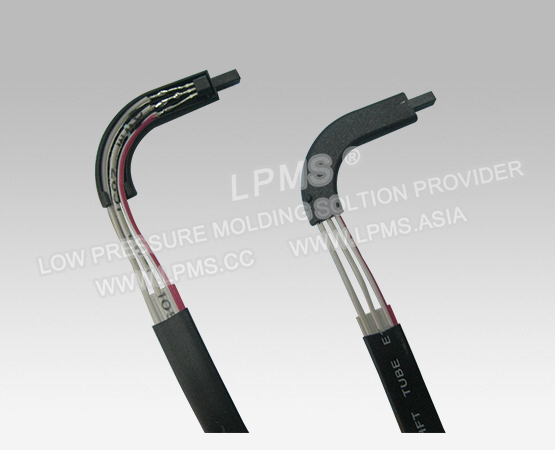 Using PA hot melt low pressure molding sealing cable clamps.This process for grommet live production,overcome wear grommet cable time and improve the production process.
